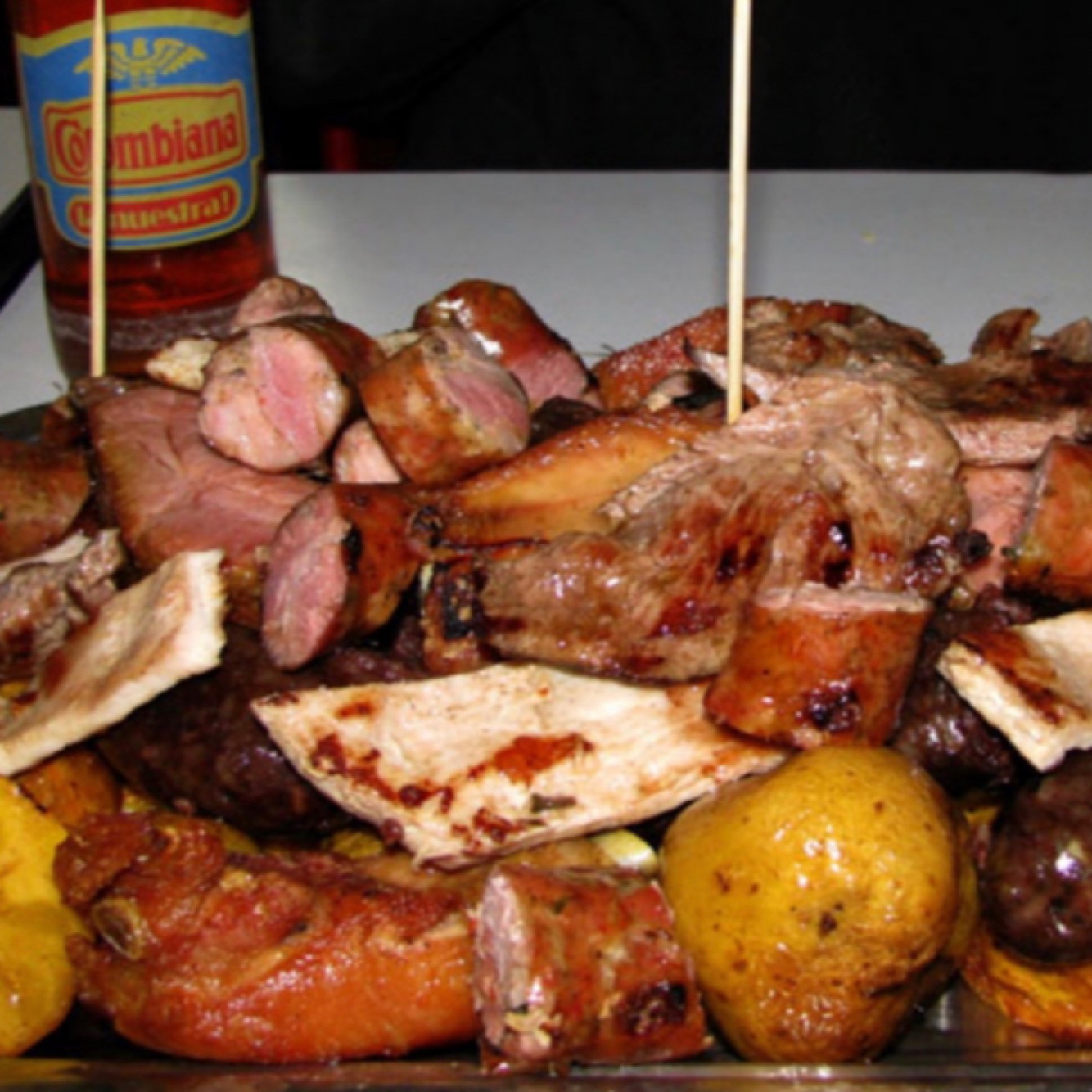 A bunch of different fried meats, cut into small pieces and served with plantain or yuca. Good with beer.