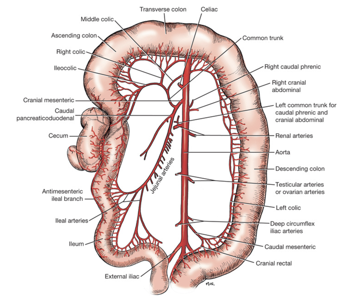 Describe the arterial supply to the colon.