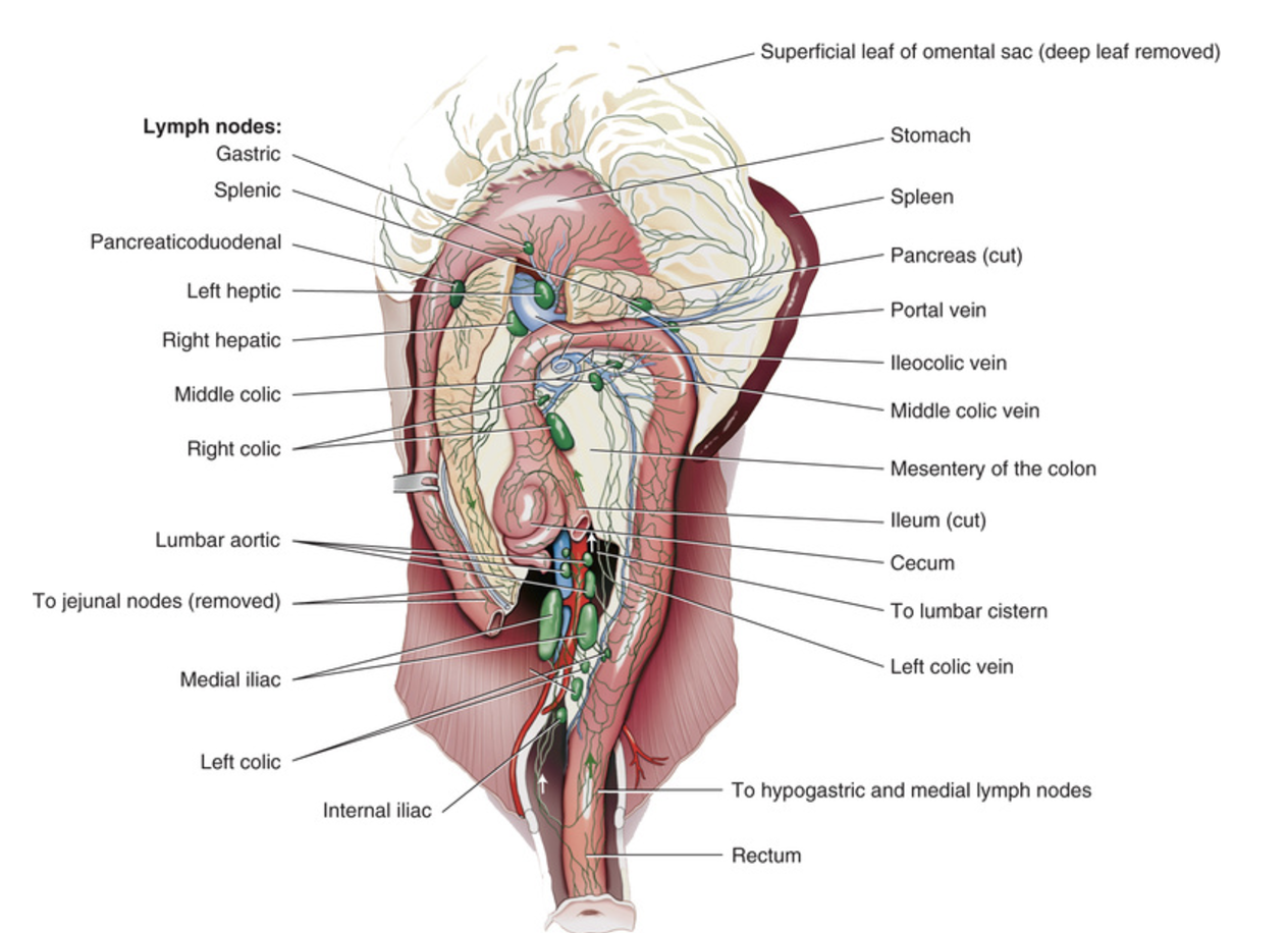 Right, middle and left colic lymph nodes.