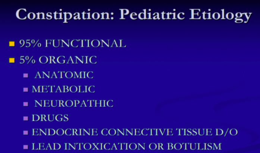Functional fecal retention is most often due to frightening or painful defecation experiences, which result in voluntary avoidance of passing stools. Repeated retention of feces causes an increase in size of stools leading to more painful defecation experiences and further attempts at avoidance.