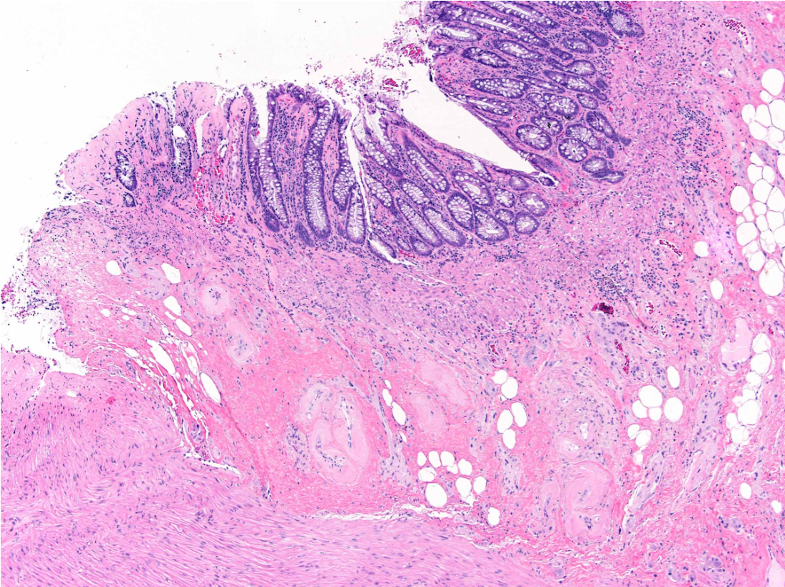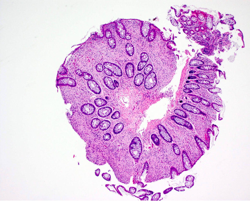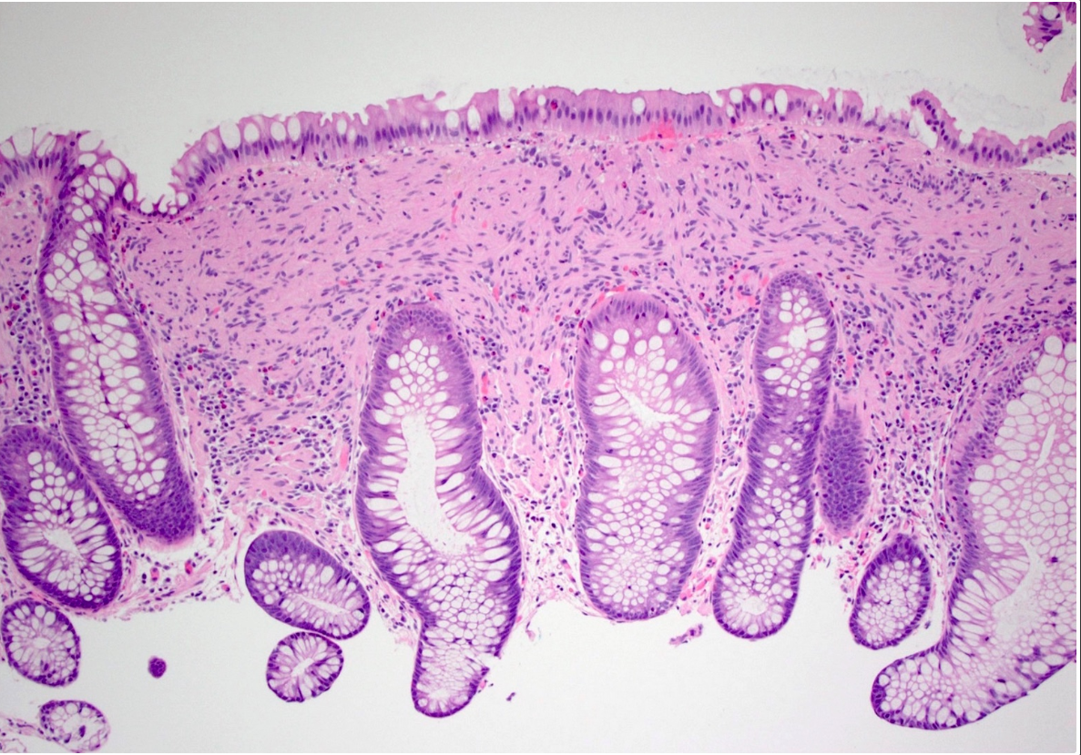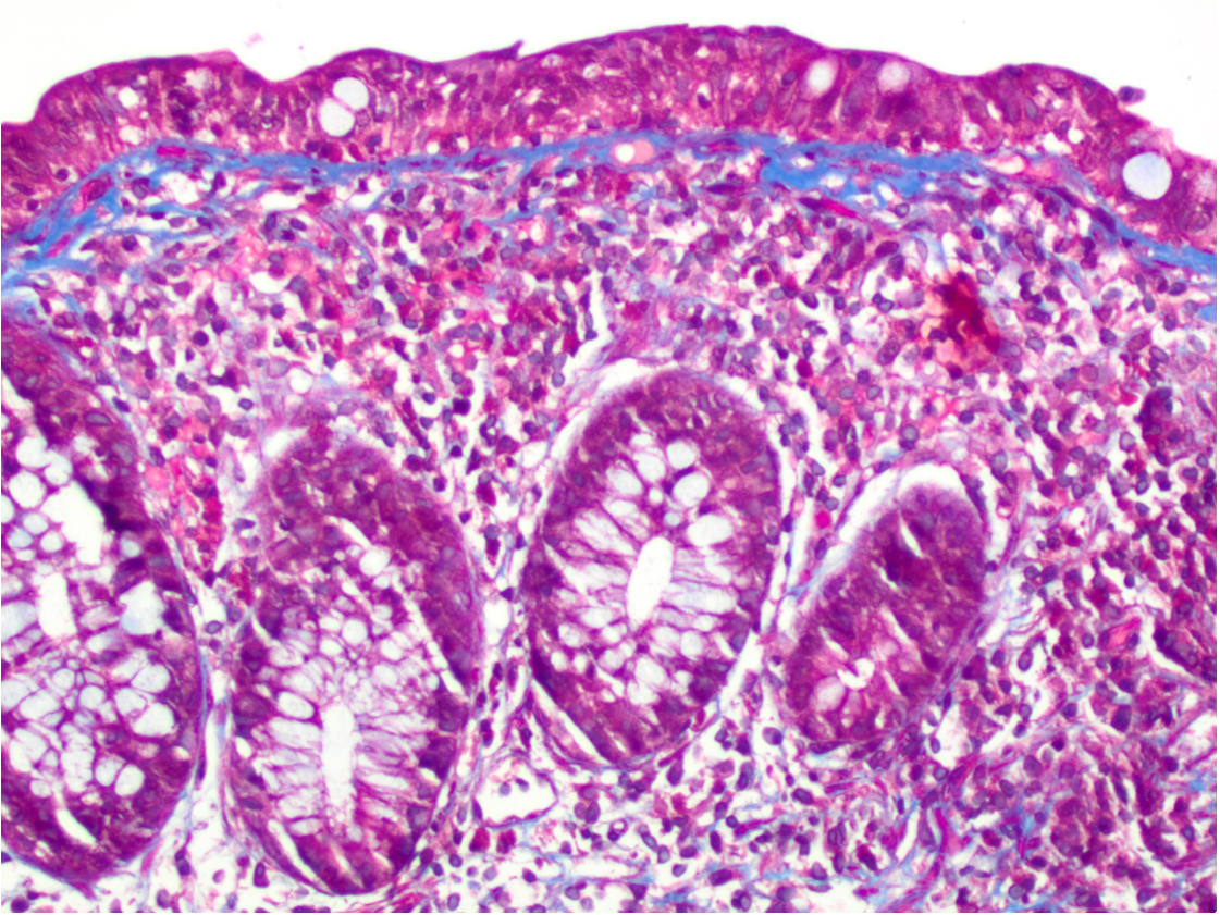 Occasional cases can have an irregular collagen band that is < 10 microns; some have labeled such cases as “incomplete collagenous colitis”