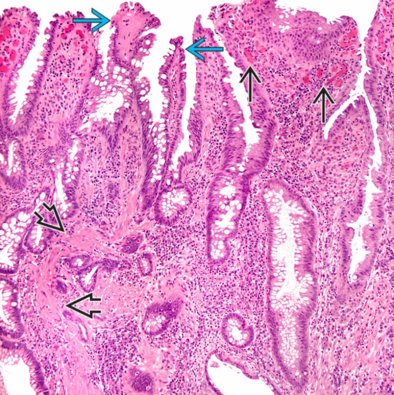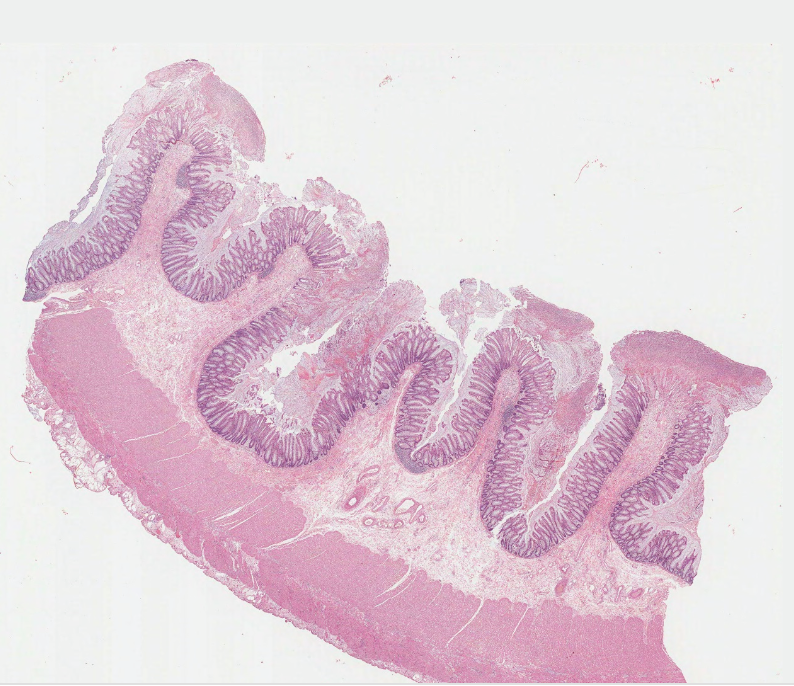 Hyperplastic/villiform regenerative surface w/ mucin loss