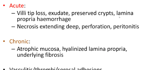 Surface mucosal damage with loss of mucin, flattening and detachment