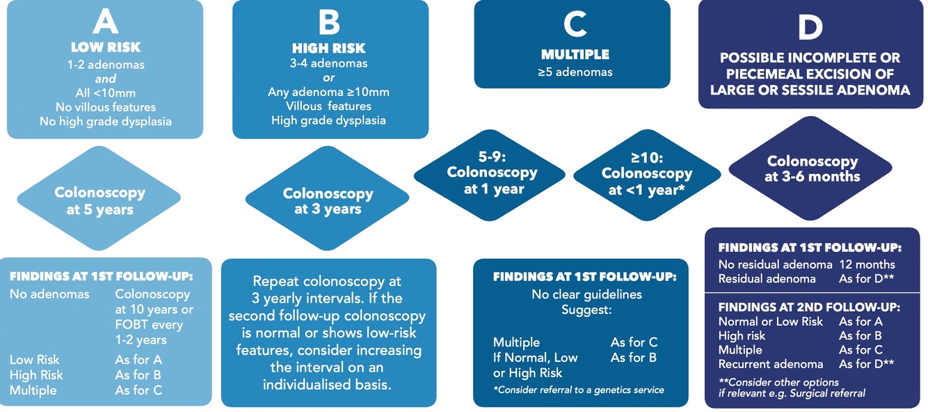 High risk features = adenoma >10mm, villous features, high grade dysplasia