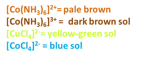 Excess NH3: pale brown sol [Co(NH3)6]2+