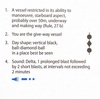 Vessel restricted in its ability to manoeuvre. This is because of the nature of the work being carried out, such as dredging or surveying.