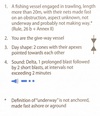 Vessel engaged in fishing with nets or lines so that it cannot deviate from its course.