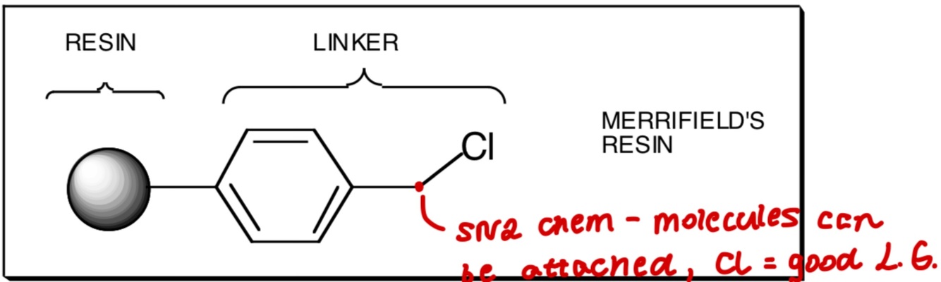 Partially cross-linked polystyrene beads that have a chloromethyl group attached - so that amino acid can bind