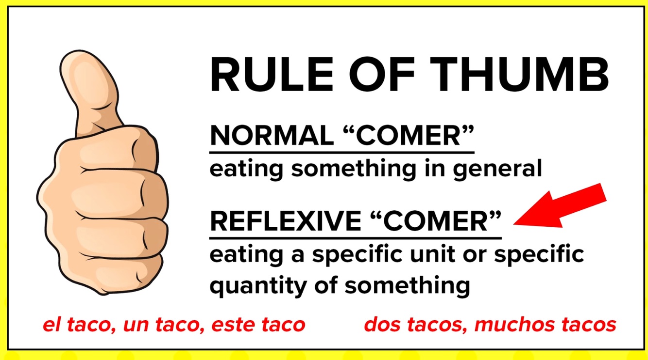 Use Reflexive Comer when talking about eating something specific, or a specific quantity.
