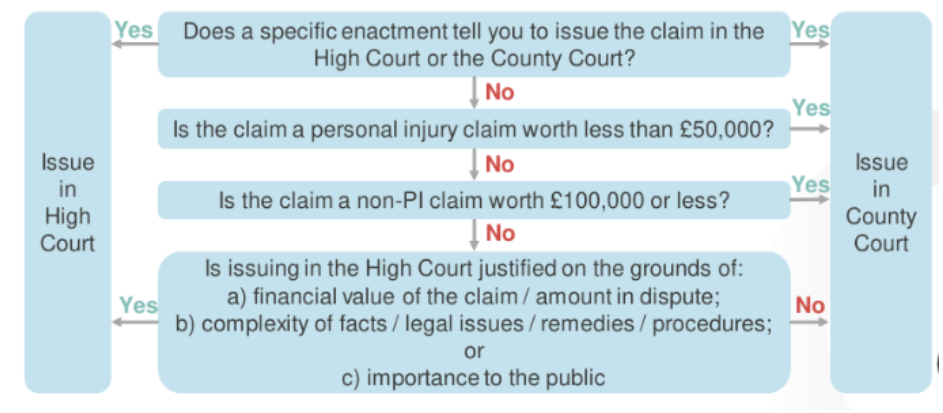 Where a claim can be started in CC or HC, on what grounds will issuing in HC be justified?
