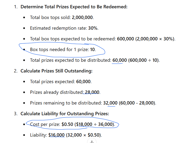 How does a company estimate its liability for outstanding promotional prizes at year-end?
