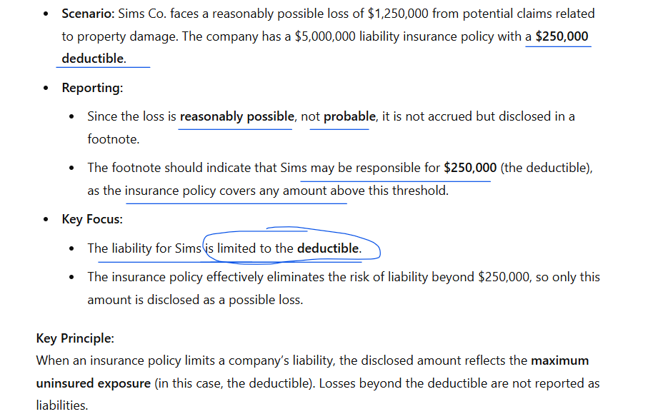 How should a company report a loss contingency when insurance covers part of the potential liability