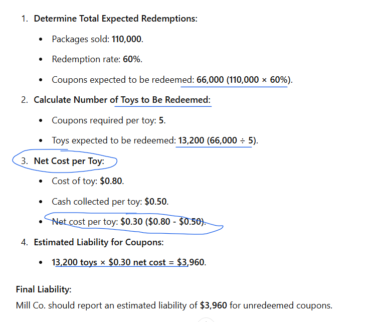 How should a company estimate its liability for coupons included with sales when redemption is expected in the future