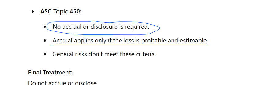 Are reserves for unspecified business risks accrued or disclosed