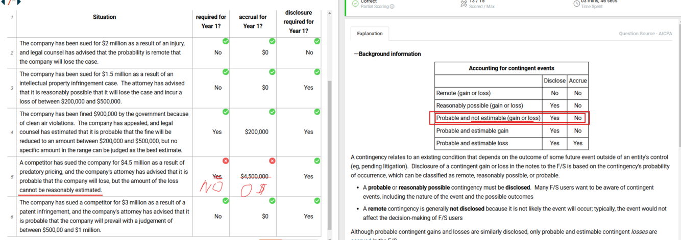 GAAP Rules for a loss contingency