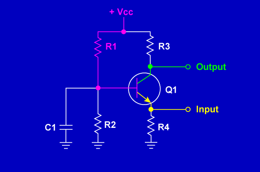 When the input signal decreases, the voltage on the emitter decreases, increasing forward bias on the base to emitter PN junction. An increased forward bias increases emitter to collector current.