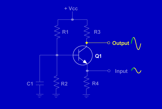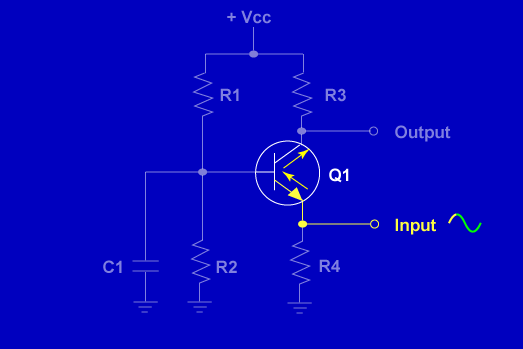 When the input signal increases, the emitter voltage increases, decreasing the forward bias on the base to emitter PN junction. A decreased forward bias decreases collector to emitter current.