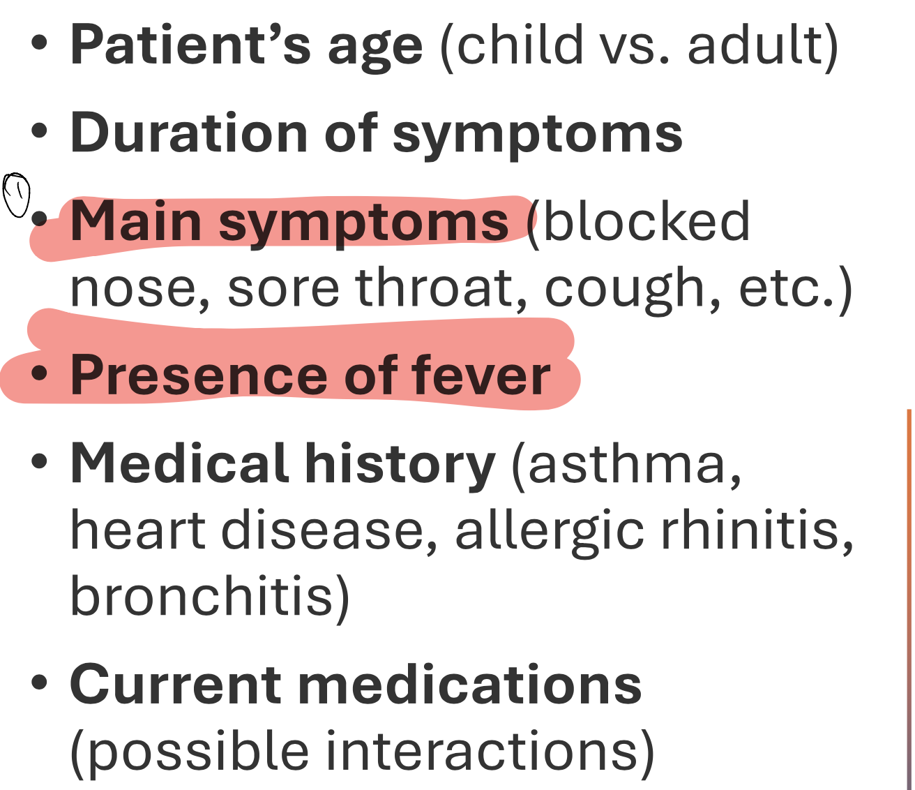 What are the key questions to ask the patient during common cold