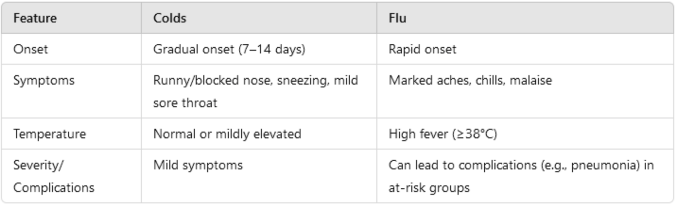 Differentiate between cold and flu