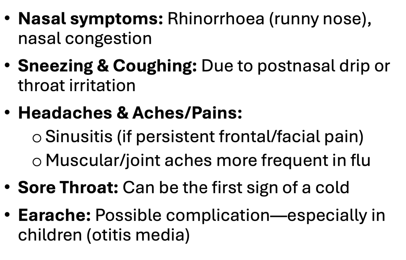 What are the common symptoms and complications of common cold