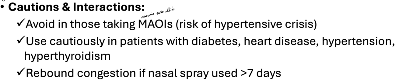 Explain the cautions and interactions of sympathomimetics (decongestants)