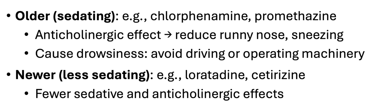 Give examples of antihistamines used for common cold