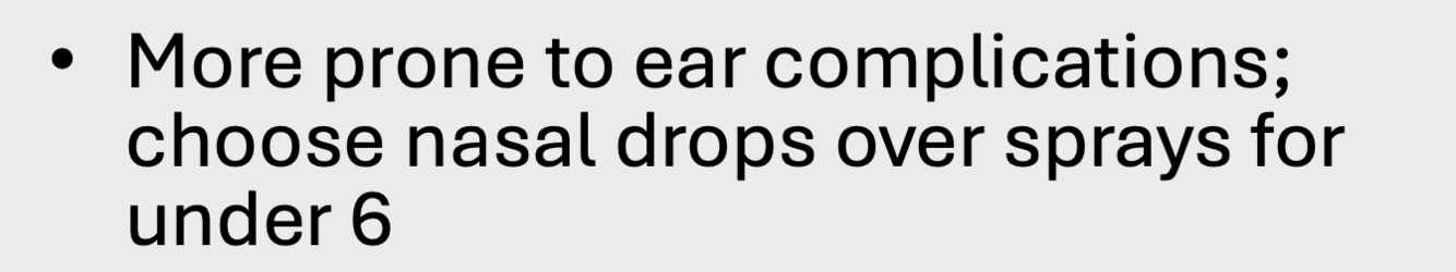 Why are nasal drops chosen over sprays in children