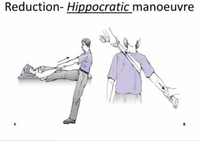 reduction methods: hippocratic, in line traction