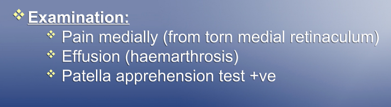 what is seen on examination if someone has patella dislocation?
