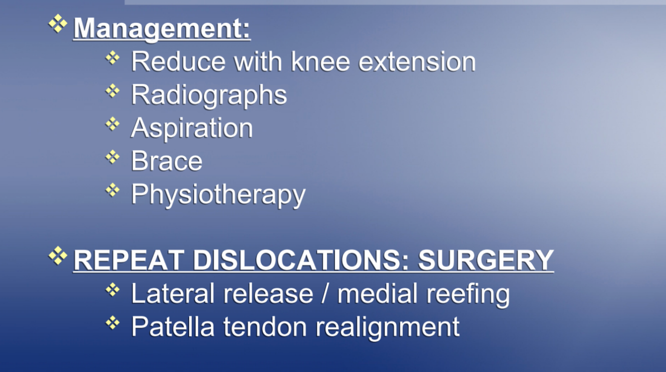 what is management for patella dislocation?