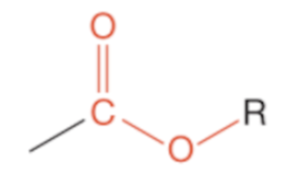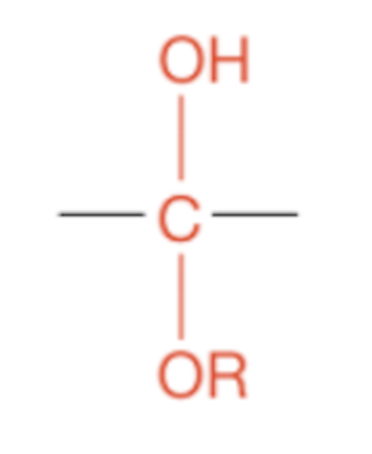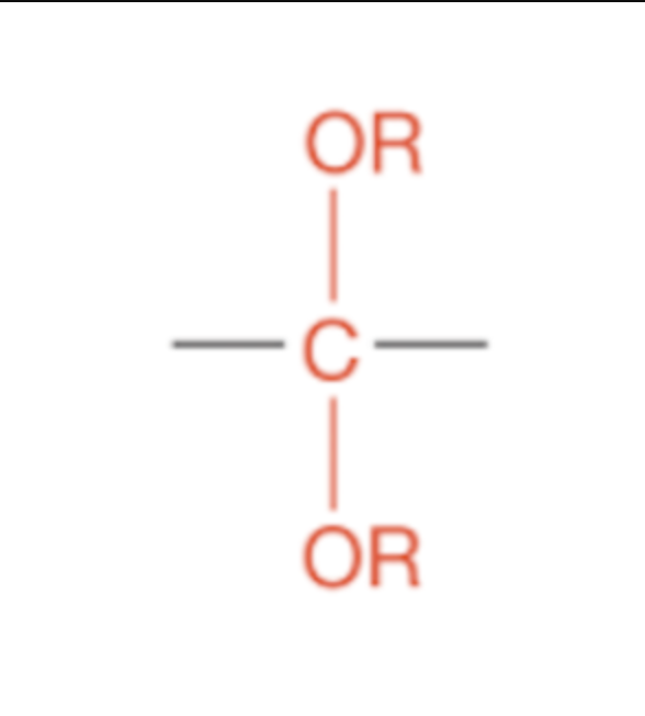 Oxygen double-bonded to a Carbon, which is single bonded to 2 other Carbons