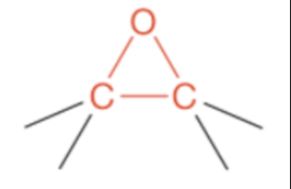 Two Carbons single bonded to an Oxygen in a triangle shape