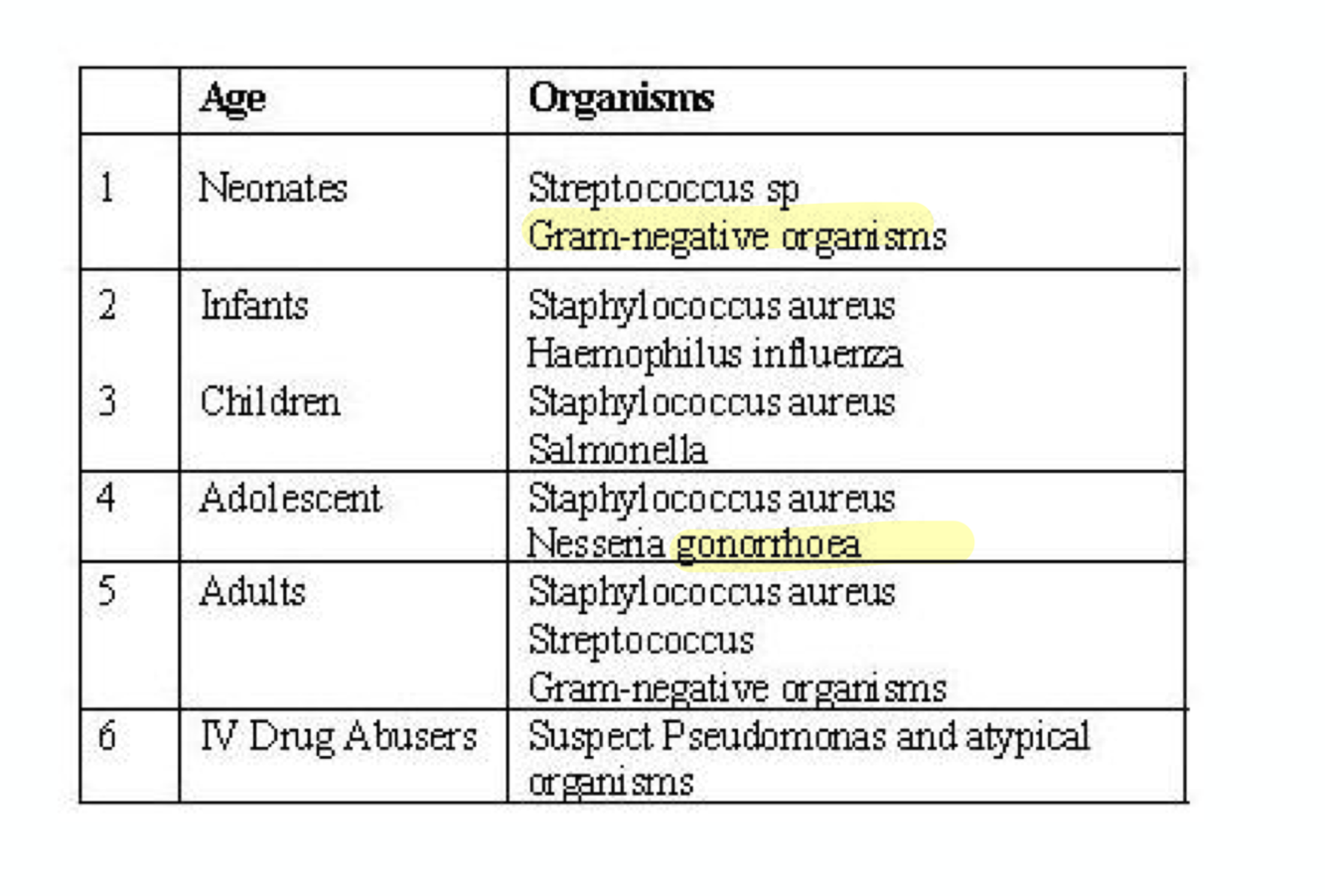 most common joints for septic arthritis in peds
