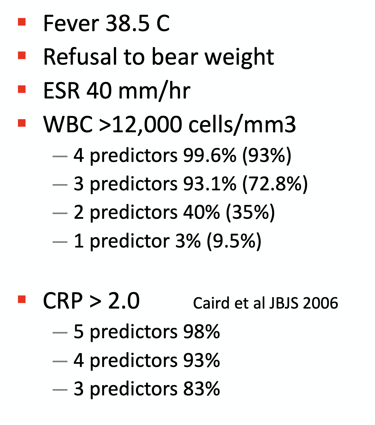 kocher criteria to diagnose septic arthritis.