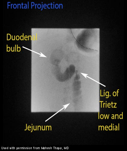 Identification of the location of the ligament of Treitz