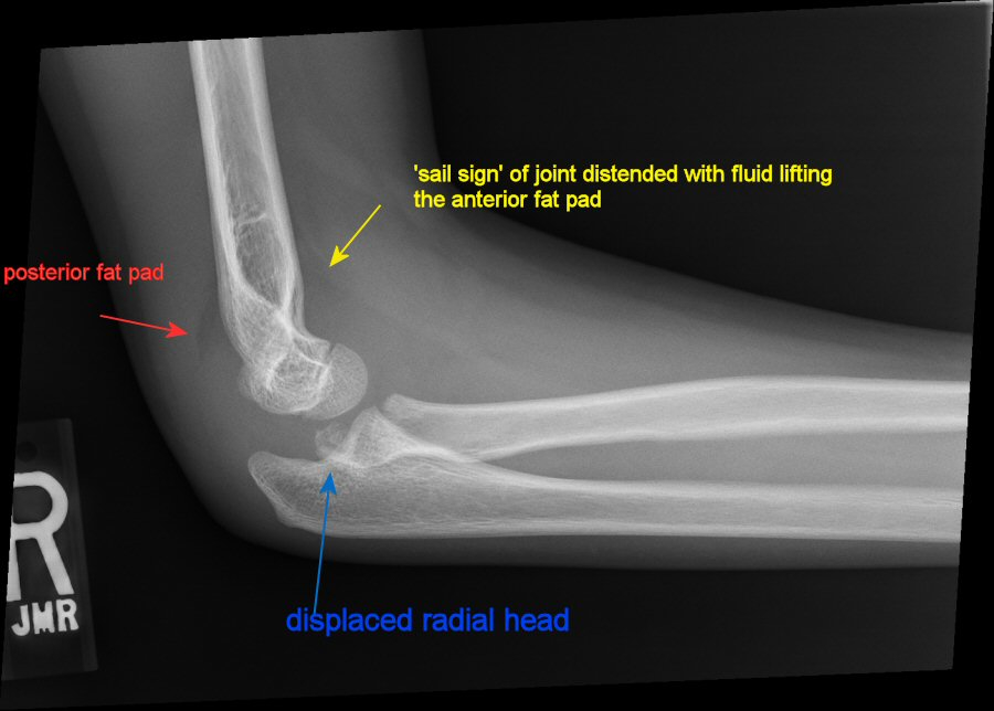 Unfortunately, they also tend to be hard to see on films. We often have to rely on elevation of the fat pads on plain films.