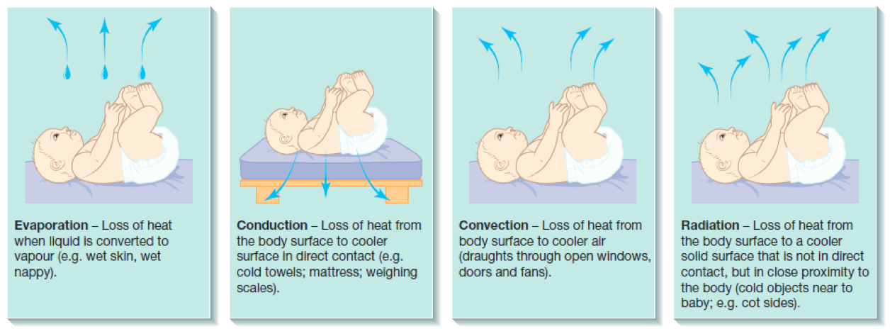 The large body surface area in relation to weight and the relative lack of subcutaneous fat make preterm infants at risk for hypothermia (body temperature below 36.5°C), especially in the first few hours after birth
