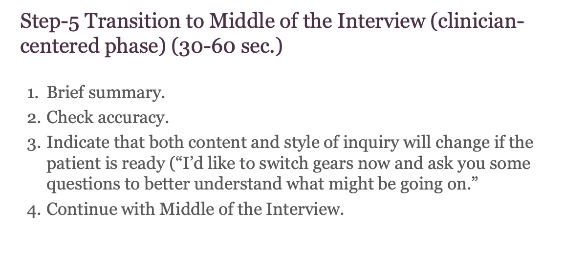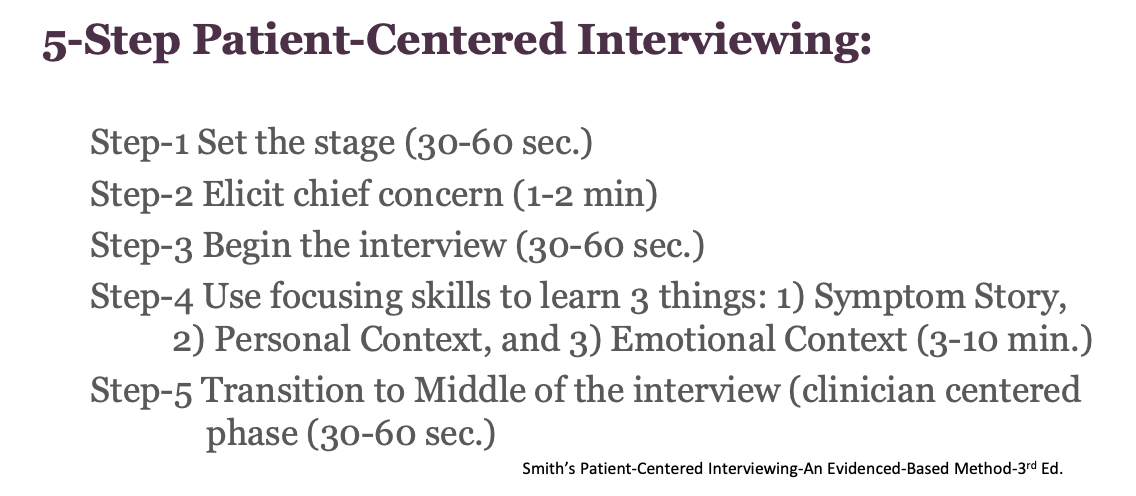 What is the 5 step pt centered interview?