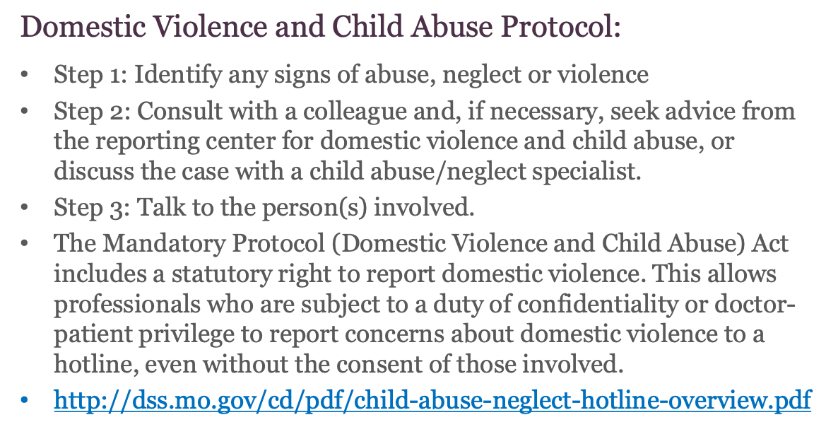 What are the steps in reporting domestic violence and child abuse?
