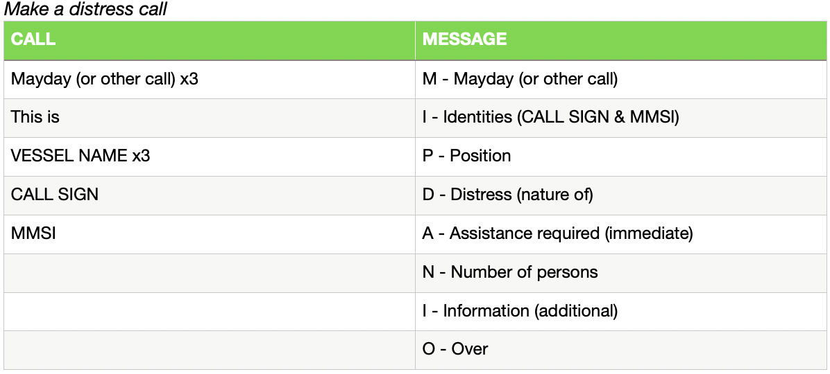 Distress call, grave and imminent danger to a person or vessel, immediate assistance is required