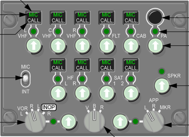 B. Selecting the FLT MIC button on an Audio Selector Panel.