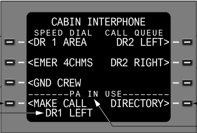 The flight deck Handset directory screen provides a quick means to call up pre- defined stations or group of stations.