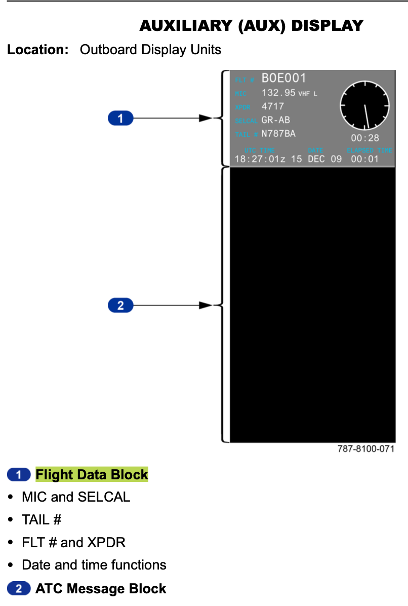 The flight data block on each auxiliary display provides: