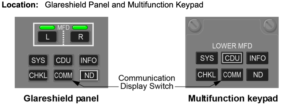 C. The COMM display switch displays the communication’s main menu on the selected MFD.