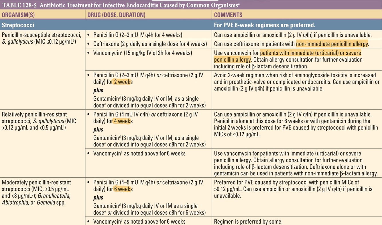OR Vancomycin (if severe penicillin allergy) × 4 weeks