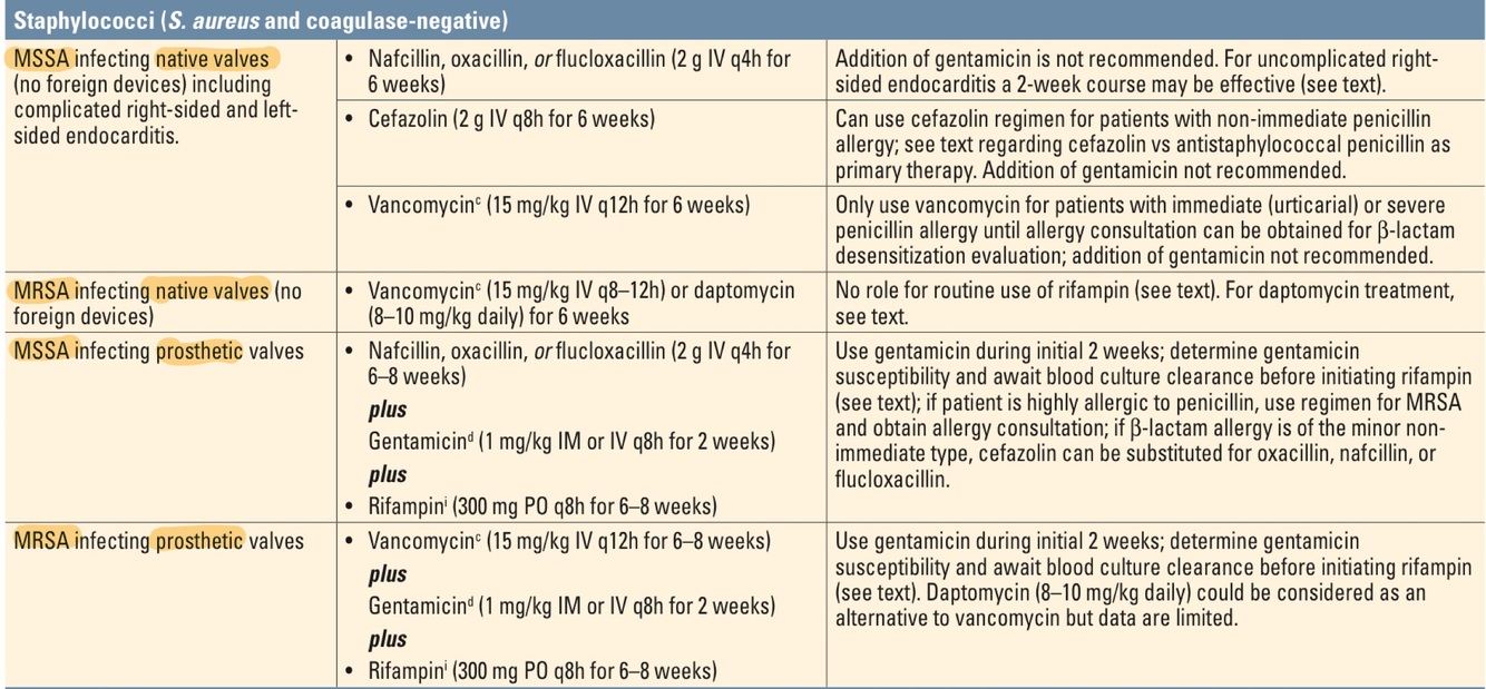 • Nafcillin, oxacillin, or flucloxacillin × 6 weeks