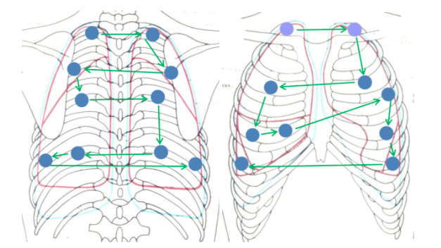 Therapist places one hand over the affected area on each side of the ribcage (or hand over hand over affected segment).