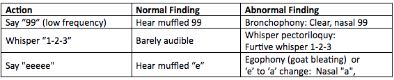 These procedures assess the ability of the lungs to transmit sound produced by the voice and to confirm pathology related to loss of alveolar air