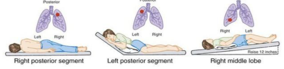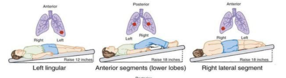 lung positioning for left lingular, anterior segments (lower lobes), and right lateral segment