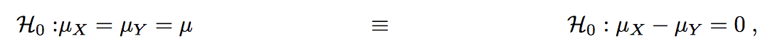 How does the following simplify under the hull hypothesis H0: μx - μy = 0?